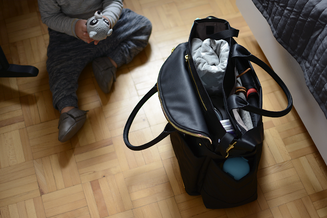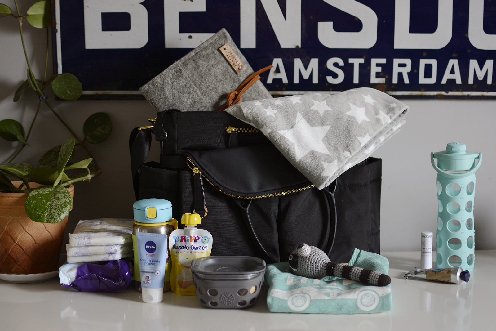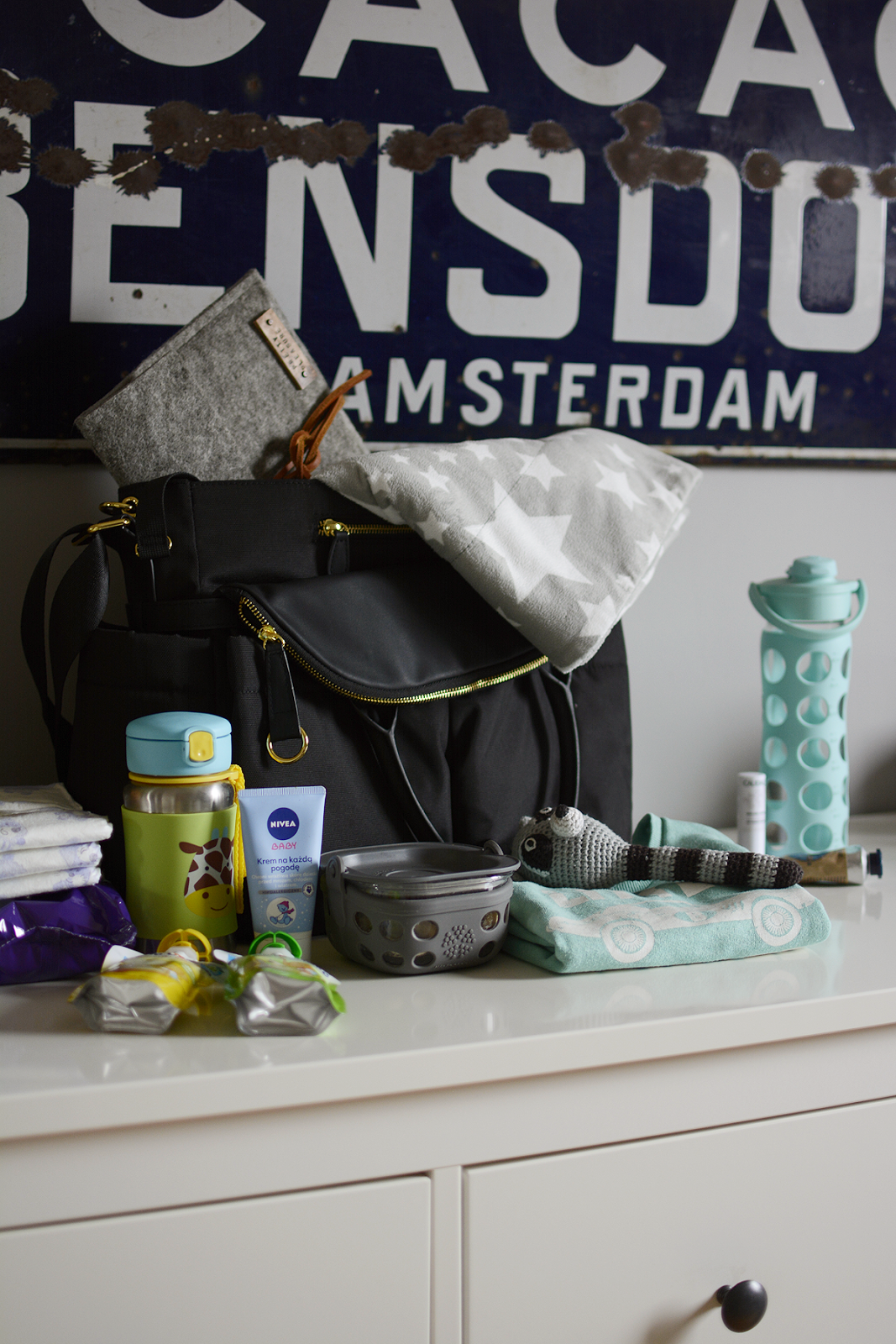 Nauczyłam się już, że niezależnie od czasu, który spędzimy poza domem, mam ze sobą zapas rzeczy, które mogą być przydatne w różnych sytuacjach. Torba bywa więc mniej lub bardziej zapakowana, ale ZAWSZE znajduje się w niej nasz "pakiet podstawowy".