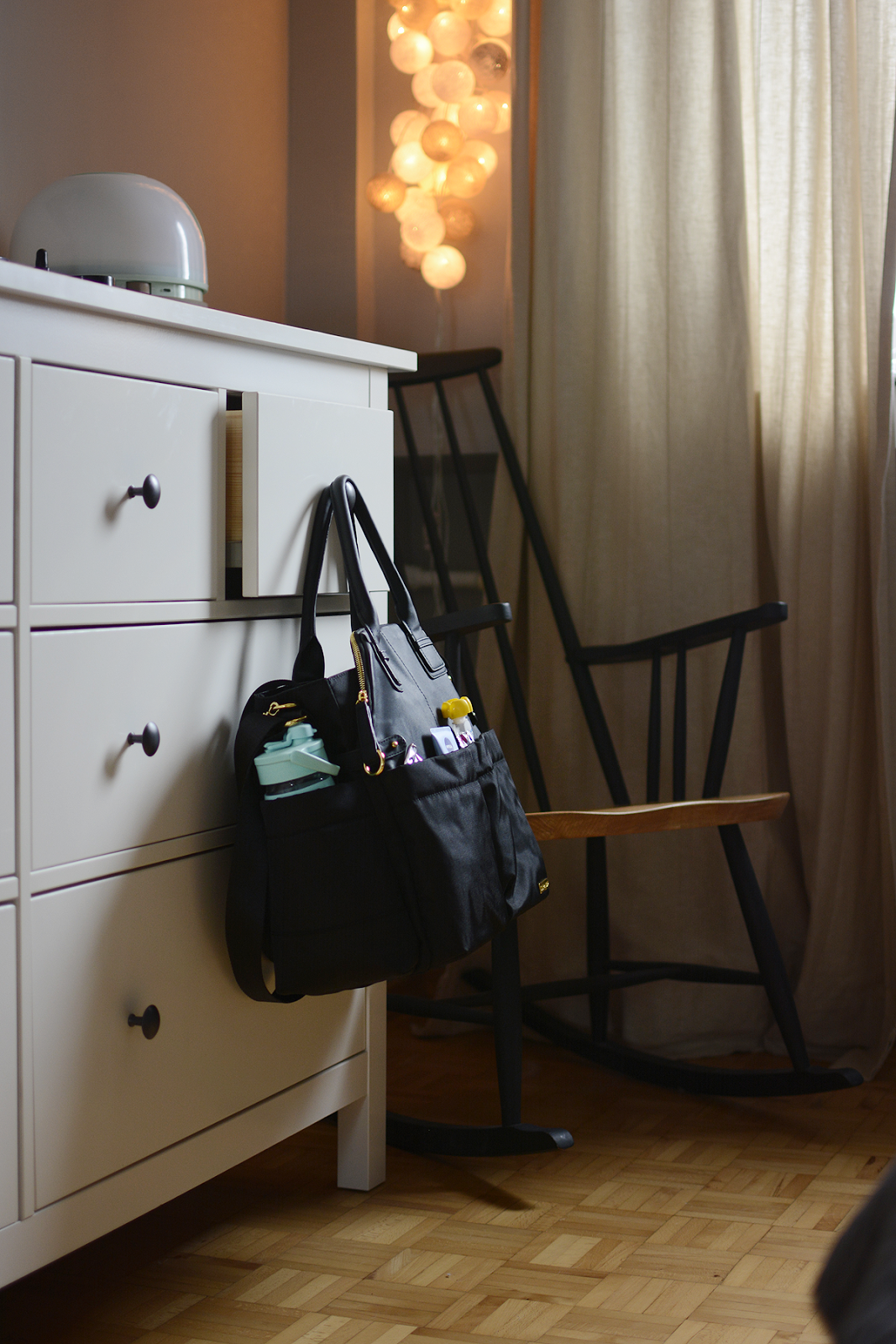 - Pamiętam także o sobie - duża ilość kieszonek w naszej torbie ułatwia posegregowanie rzeczy na te, które należą stricte do Mamy, oraz na te, które potrzebne są Chłopcu. Noszę ulubiony krem (mycie rąk i naczyń milion razy dziennie robi moim dłonią kiepski PR), telefon i notatnik z długopisem- nigdy nie wiem, kiedy wpadnie mi do głowy myśl, którą chciałabym umieścić później we wpisie na blogu.