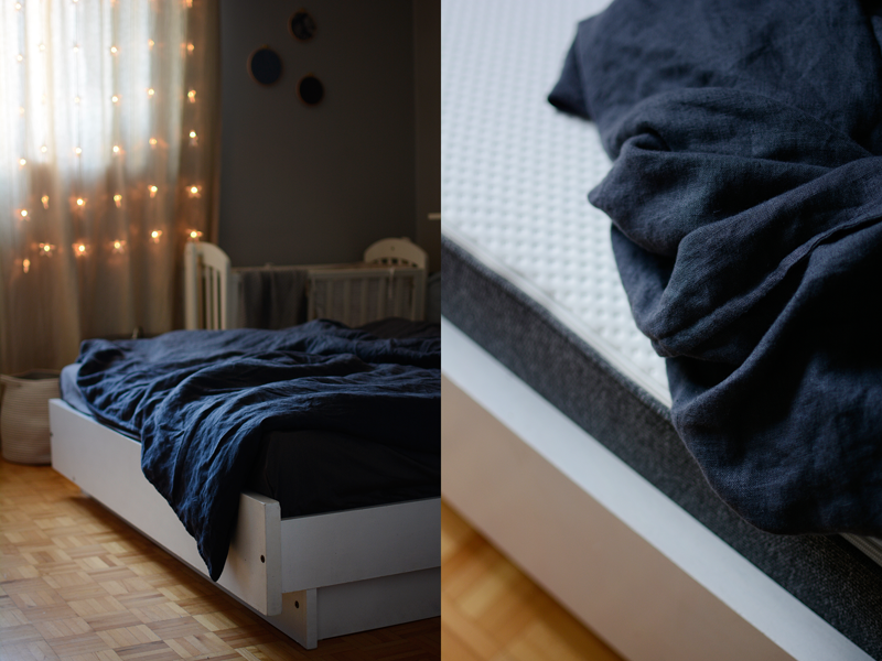 Nasze łóżko bywa przystankiem autobusowym, trampoliną i remizą strażacką. W nocy, kiedy przyśni się coś złego, jest miejscem, w którym znajduje się ukojenie obok Taty i Mamy. Zdarza nam się spać w nim we czwórkę (czasami w nogach kładzie się jeszcze Figa!). Było dla mnie niesamowicie ważne, żeby było nam w nim po prostu dobrze. I zdaje się, że się udało, bo cały czas ktoś w nim urzęduję.